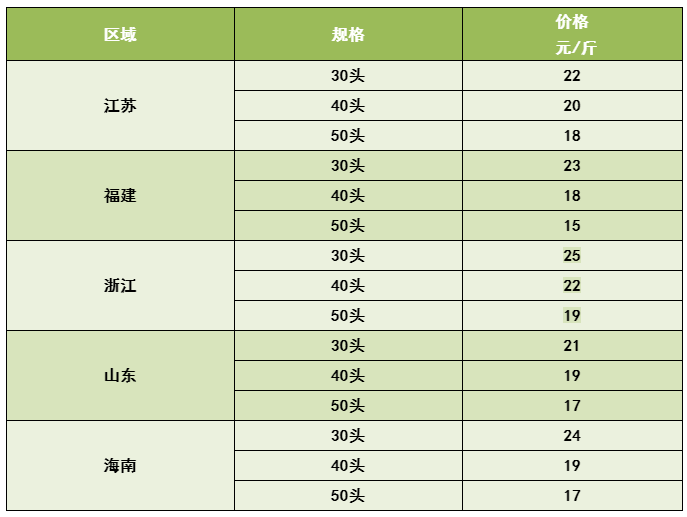 本周,國內(nèi)部分市場需求降低,造成部分地區(qū)的蝦價出現(xiàn)降低,比如:連云港、福建漳州地區(qū);另外,由于最近氣溫變化頻繁,一些地區(qū)的病蝦數(shù)量也得到增加,比如:福建漳浦地區(qū)。但是,市場上大蝦的價格基本保持穩(wěn)定,一些地區(qū)大蝦價格獲得上漲。由于國慶節(jié)即將到來,大多數(shù)養(yǎng)殖戶都在觀望國慶佳節(jié)能夠帶動蝦價進一步上漲。